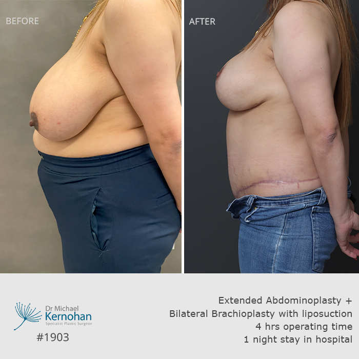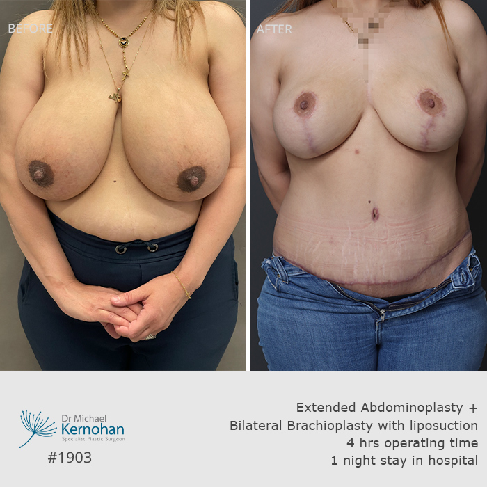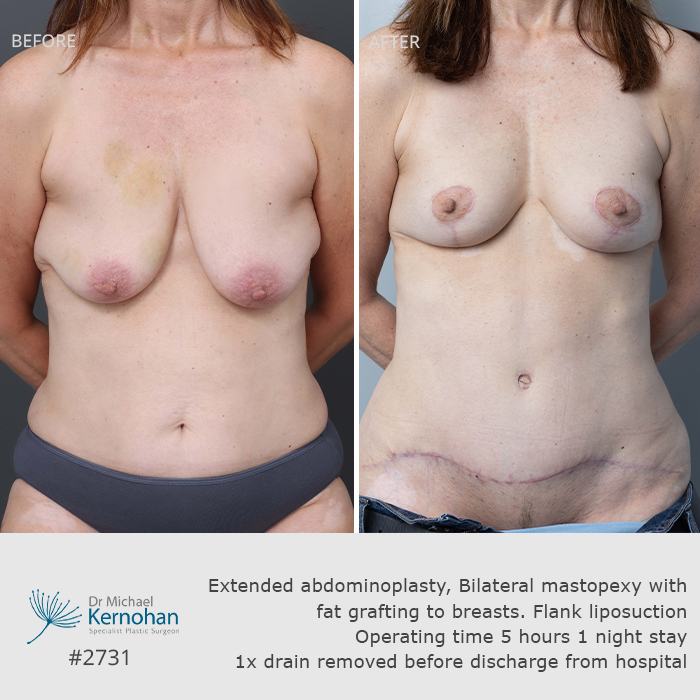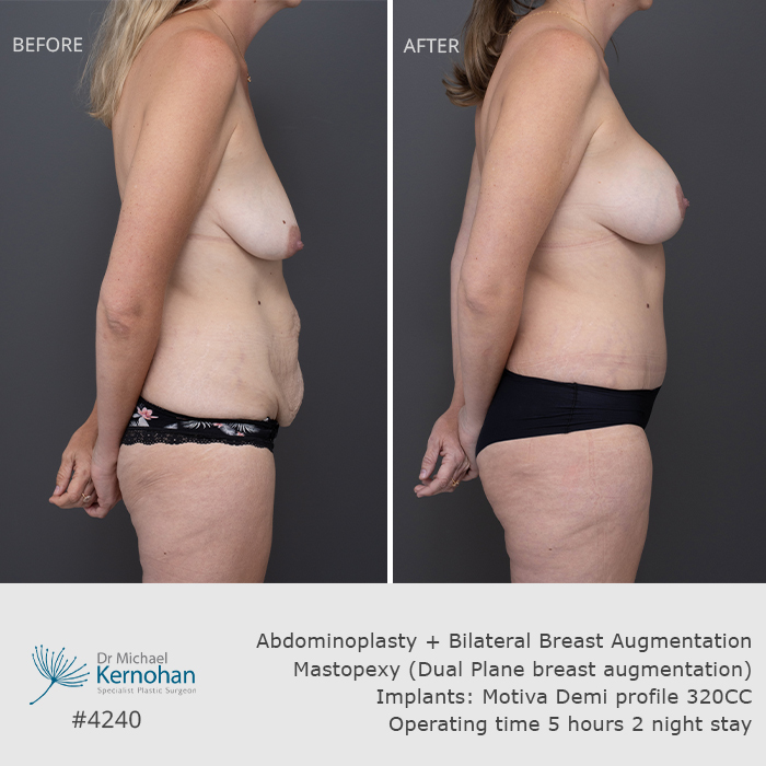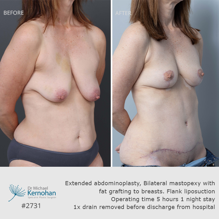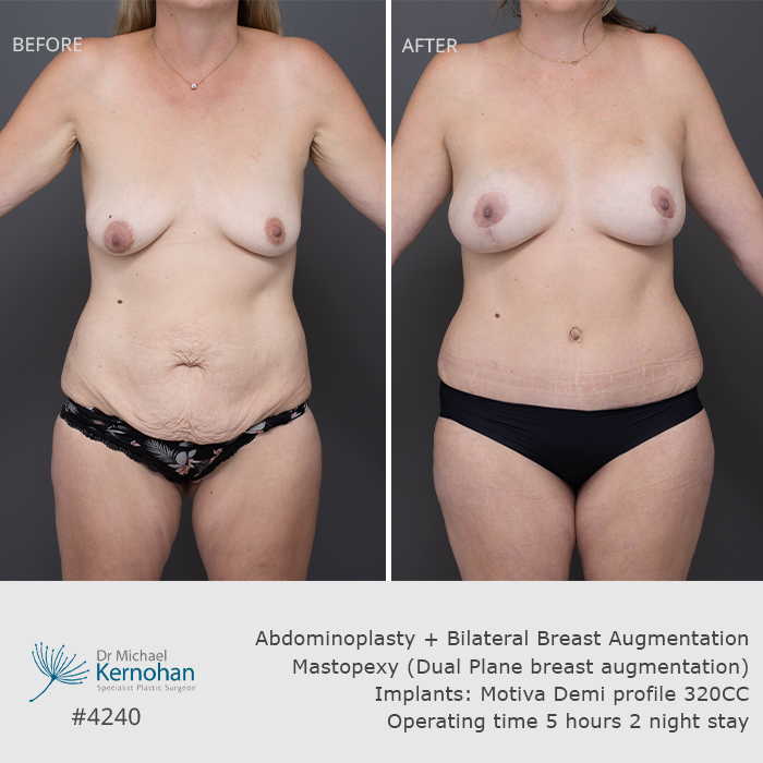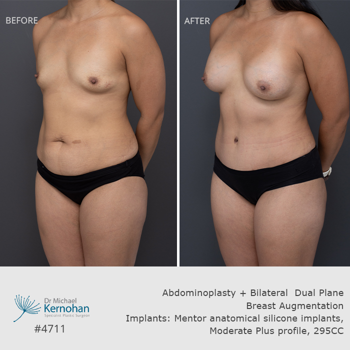 View before and after breast and body combination images below to see examples of results achieved by Dr Kernohan for patients seeking harmonious, balanced enhancements.