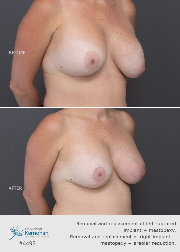Removal and replacement of right implant + mastopexy + areolar reduction. Removal and replacement of right implant + mastopexy + areolar reduction.