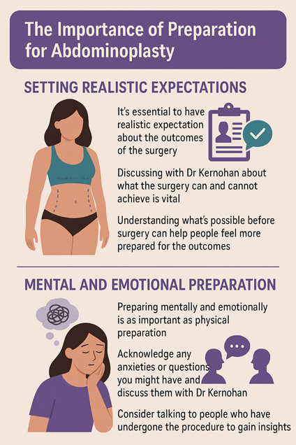 Abdominoplasty is a complex surgical procedure aimed at removing excess skin from the abdominal area. In this blog, Sydney Specialist Plastic Surgeon Dr Michael Kernohan aims to provide you with thorough and practical advice on preparing for abdominoplasty surgery, ensuring you are well-informed and ready for both the procedure and the recovery period.